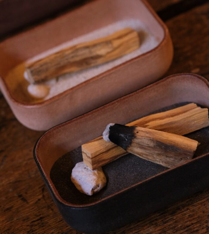 まずは、鹿児島のレザーブランド「RHYTHMOS:リュトモス」の飯伏さんにご挨拶。(2年振りにお会いできてうれしかったです!)リュトモスは、長く使った後でも修理して使い続けることができるよう、全ての工程を手仕事にこだわり仕立てている、実直でとてもステキなブランドです。新作のバッグやお財布、ホームグッズなどを見せてもらいました。