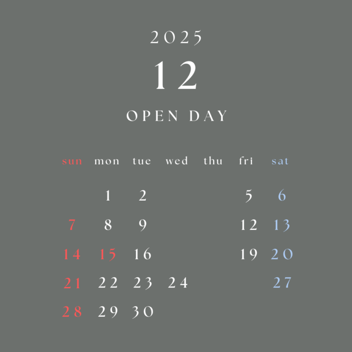 定休日:毎週木曜日・3日(水)・10日(水)・17日(水)・26日(金)・31日(水)