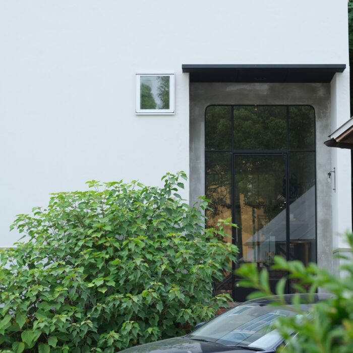 名古屋駅から電車を乗り継いで約30分。閑静な住宅街を進んだ小高い丘の上に、圧倒的な存在感でプルーフオブギルドさんのショップ兼アトリエが佇んでいました。